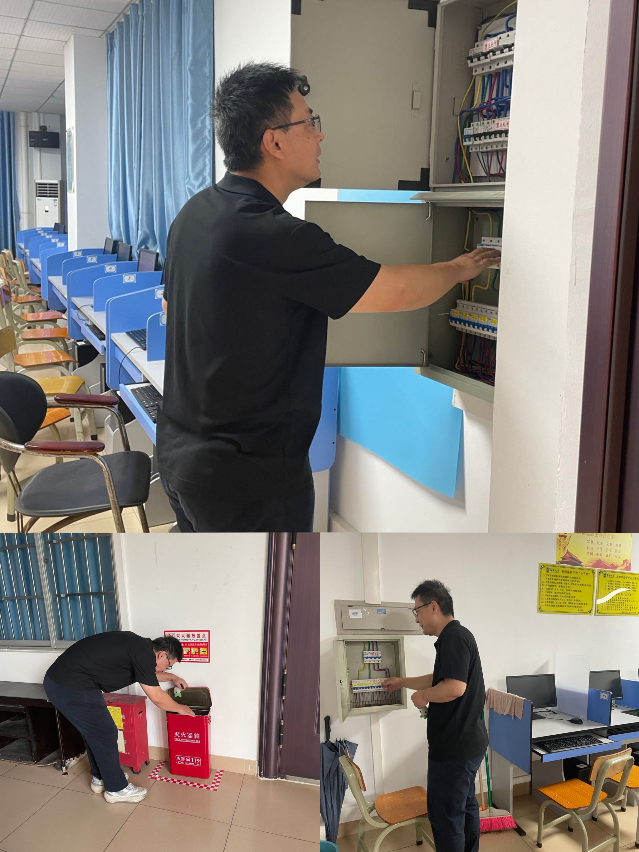 按《海南大学实验室与设备管理处关于进一步落实院级单位实验室安全职责的通知》(海大实〔2023〕48号)要求,确保各项实验室安全管理制度落到实处,切实筑牢校园安全防线,及时排除安全隐患,保障教学和科研工作的顺利进行。2023年10月30日,在我院实验室主任毛旭强老师和科研与教学办公室主任王燕华的带领下,学院开展10月份实验室安全检查常规工作。本次检查,重点是对我院的教学实验室和科研实验室中的服务器存放环境、消防设施、门、窗等设备进行安全检查。