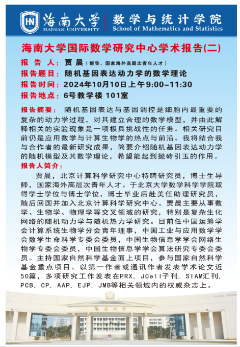 海南大学国际数学研究中心学术报告(二):随机基因表达动力学的数学理论